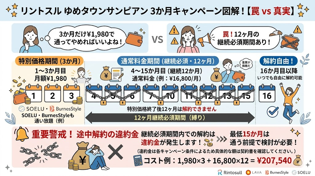 リントスルの3か月キャンペーンに「罠」はあるか?違約金と継続必須期間の真実